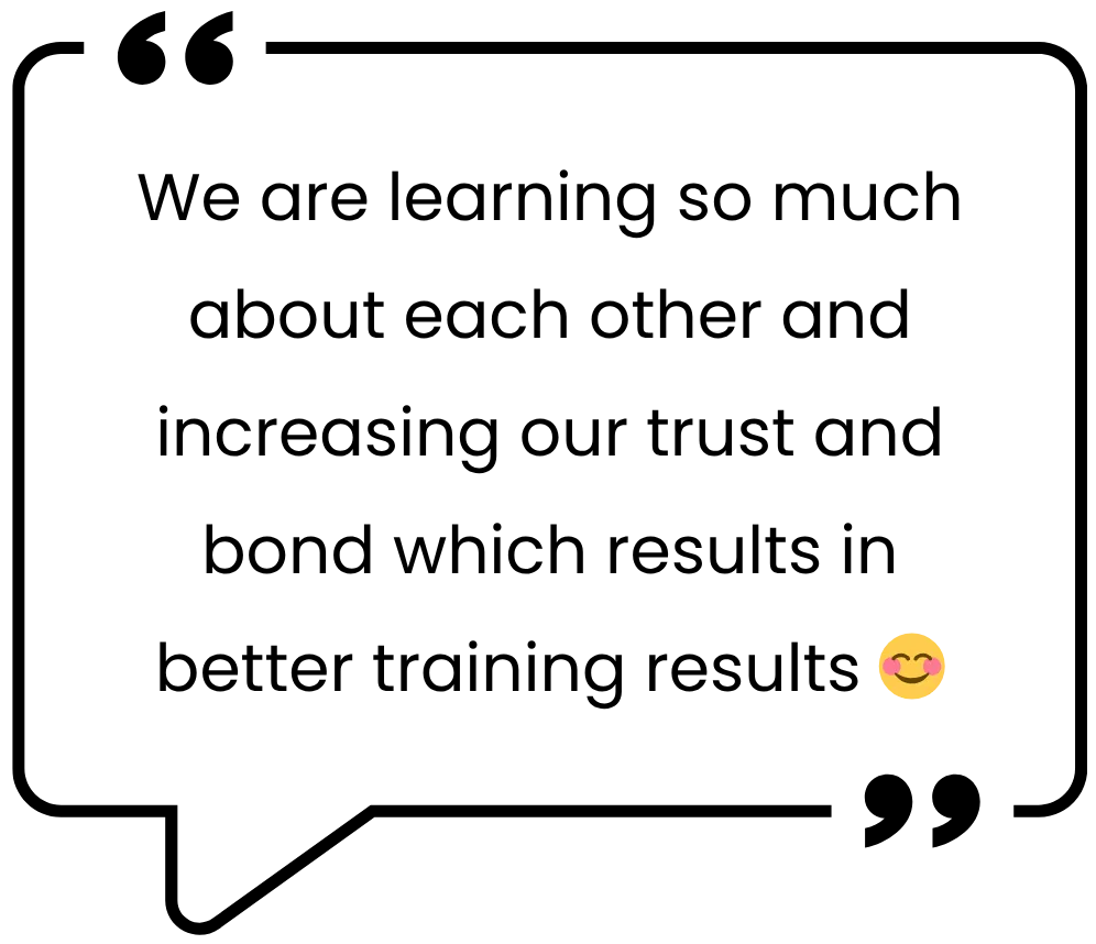 Sessions should stay between 5–15 minutes — short enough that your dog stays engaged and ends on a win. You'll also start applying the concepts in real-life moments throughout your day, which is actually where the biggest shifts happen.
